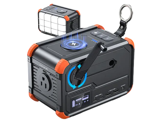 20000mAh,Hand Crank,Built-in Cables,15W Wireless Charging,LED Light